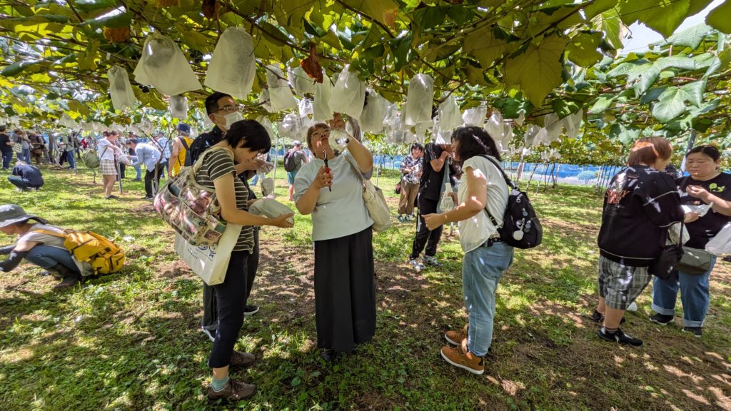 初日の開園直後ということで、すでに沢山の人たちがぶどうを求めに来ていました。